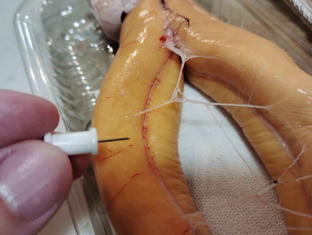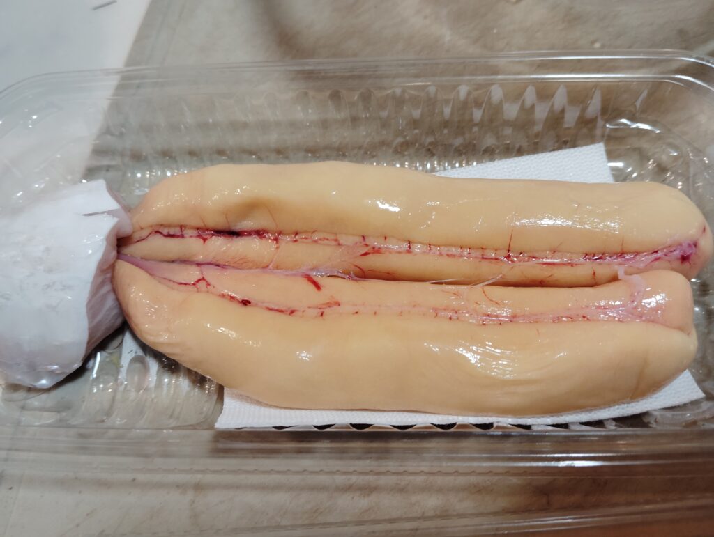 この血管に針で穴をあけ、水で流していくことで血抜きをします。