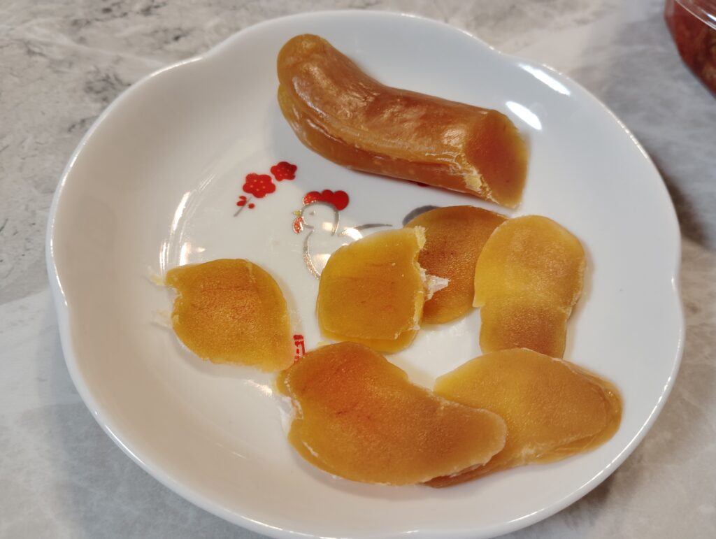 ぐにゃっとした触感なので、ものすごい歯にくっつきます。これは削ってパスタにかけたり、なんらか調味料的に使った方が良いかもしれません。
