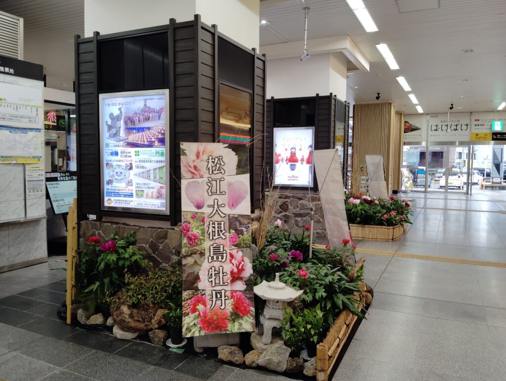 最寄駅の松江しんじ湖温泉駅までは徒歩で数分ですが、電車で松江駅まで向かうと時間がかかるのでタクシーで時間を節約です。