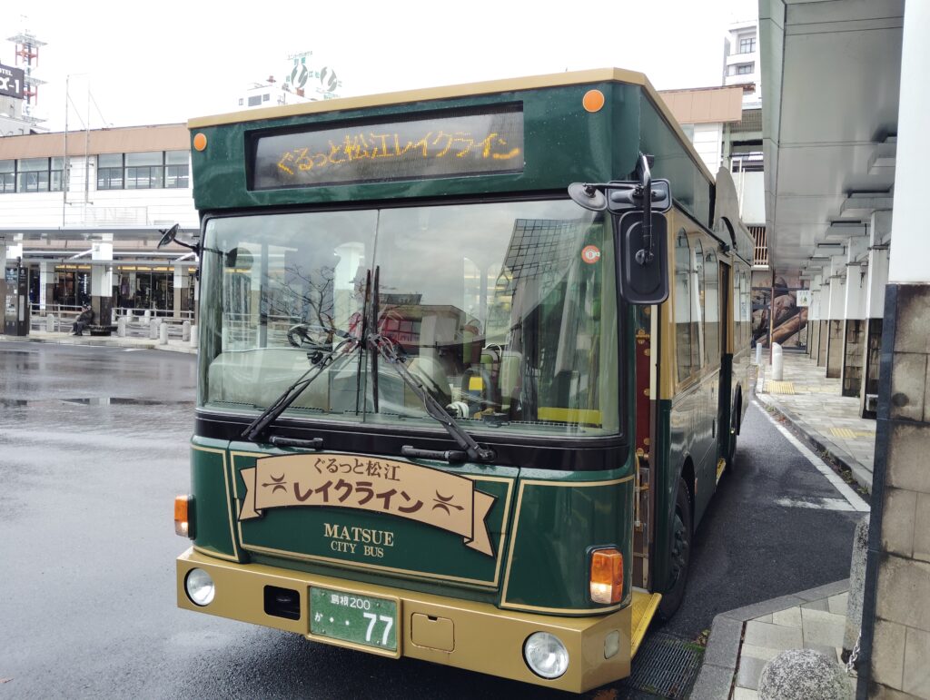松江駅のバス停から周遊バス「松江レイクライン」に乗ります。