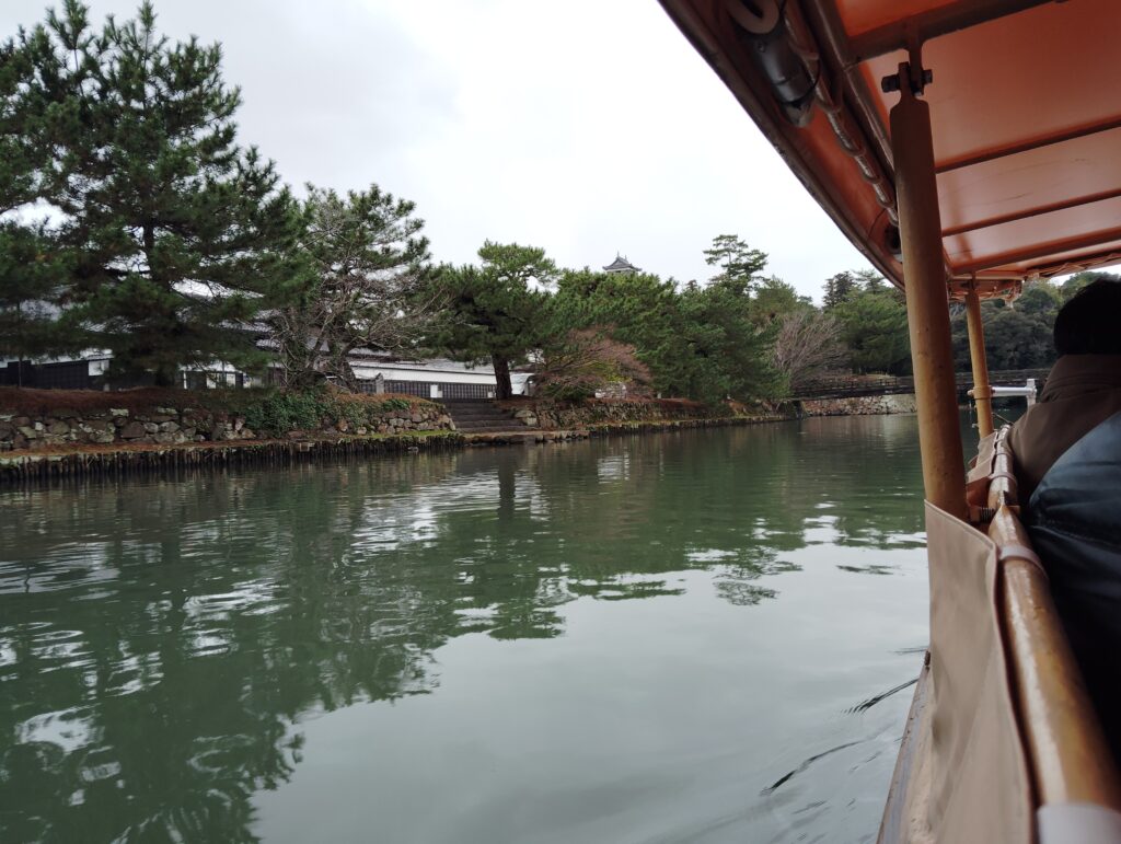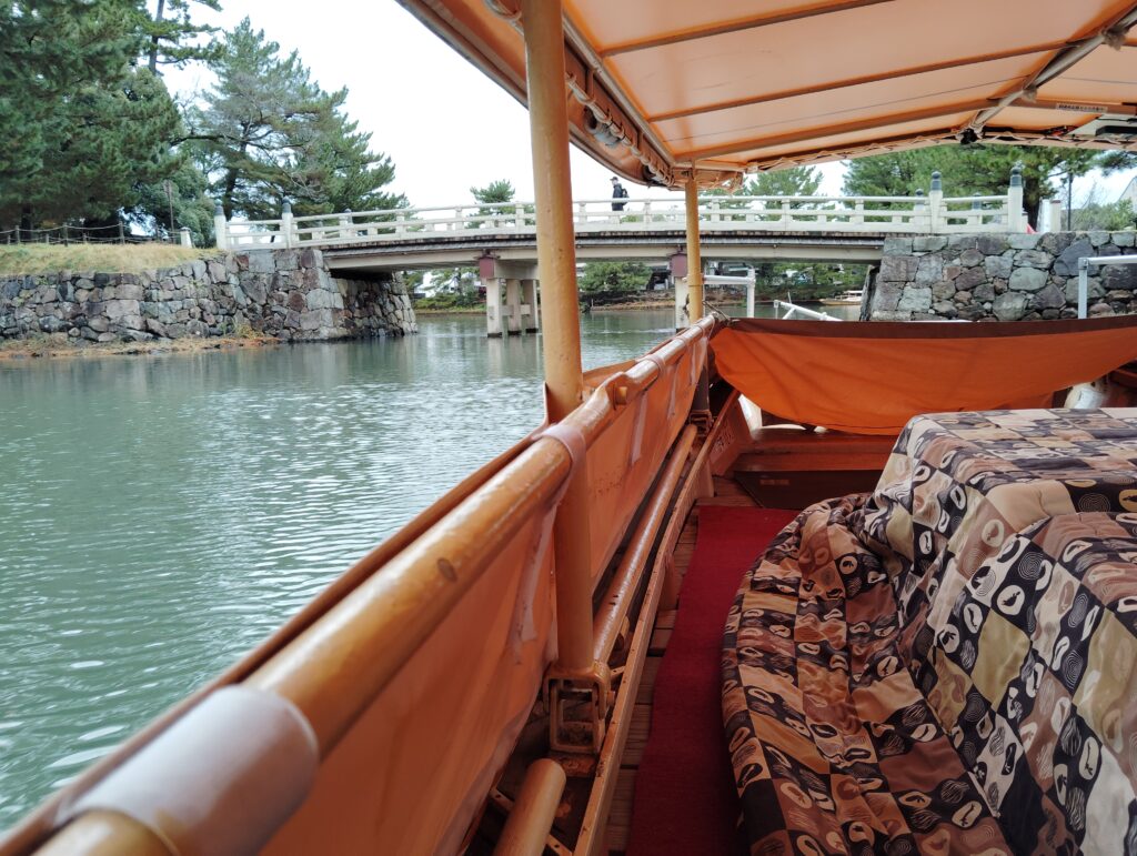手漕ぎの舟で松江城の周りの濠を一周してくれます。