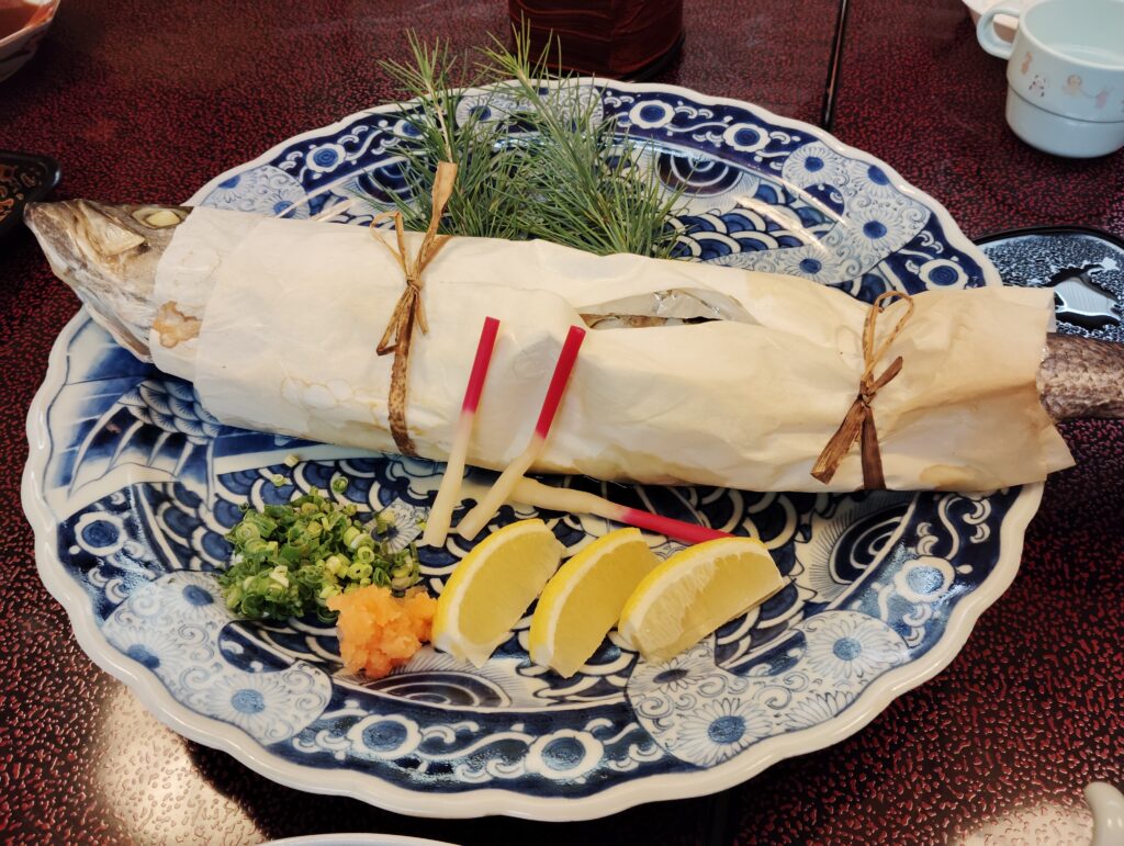 そして、メインには特大スズキの蒸し魚です。身がふわふわでめっちゃ美味しい。