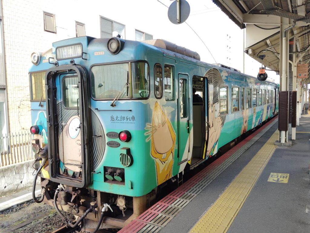 境港線の各駅も別称としてゲゲゲの鬼太郎の各キャラクターの名前が付けられていたり、車両もラッピングされており、全面的に鬼太郎押しですね。