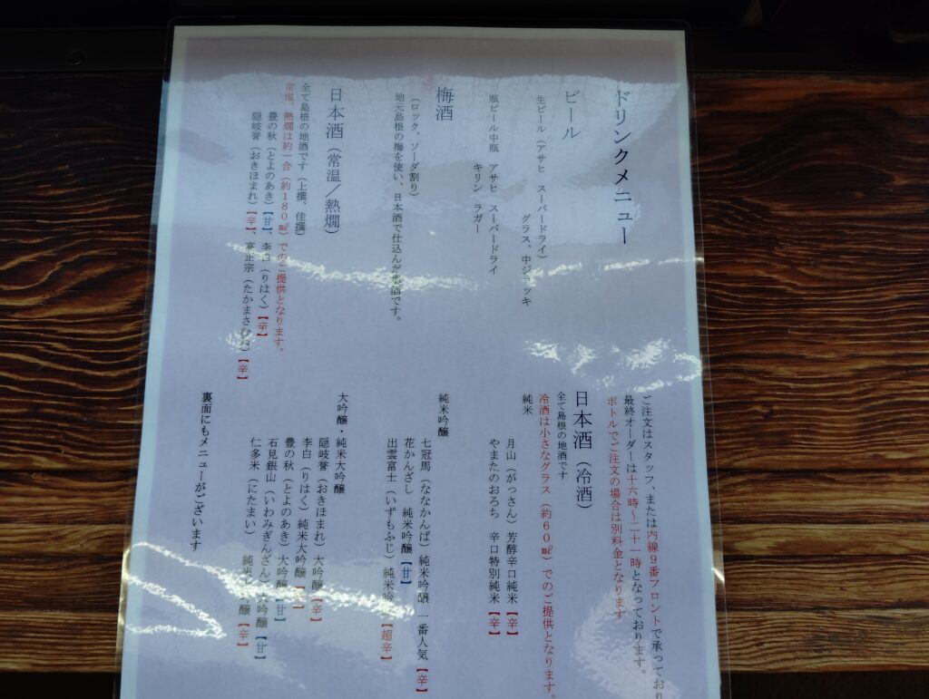 ドリンクメニューはこちら↓